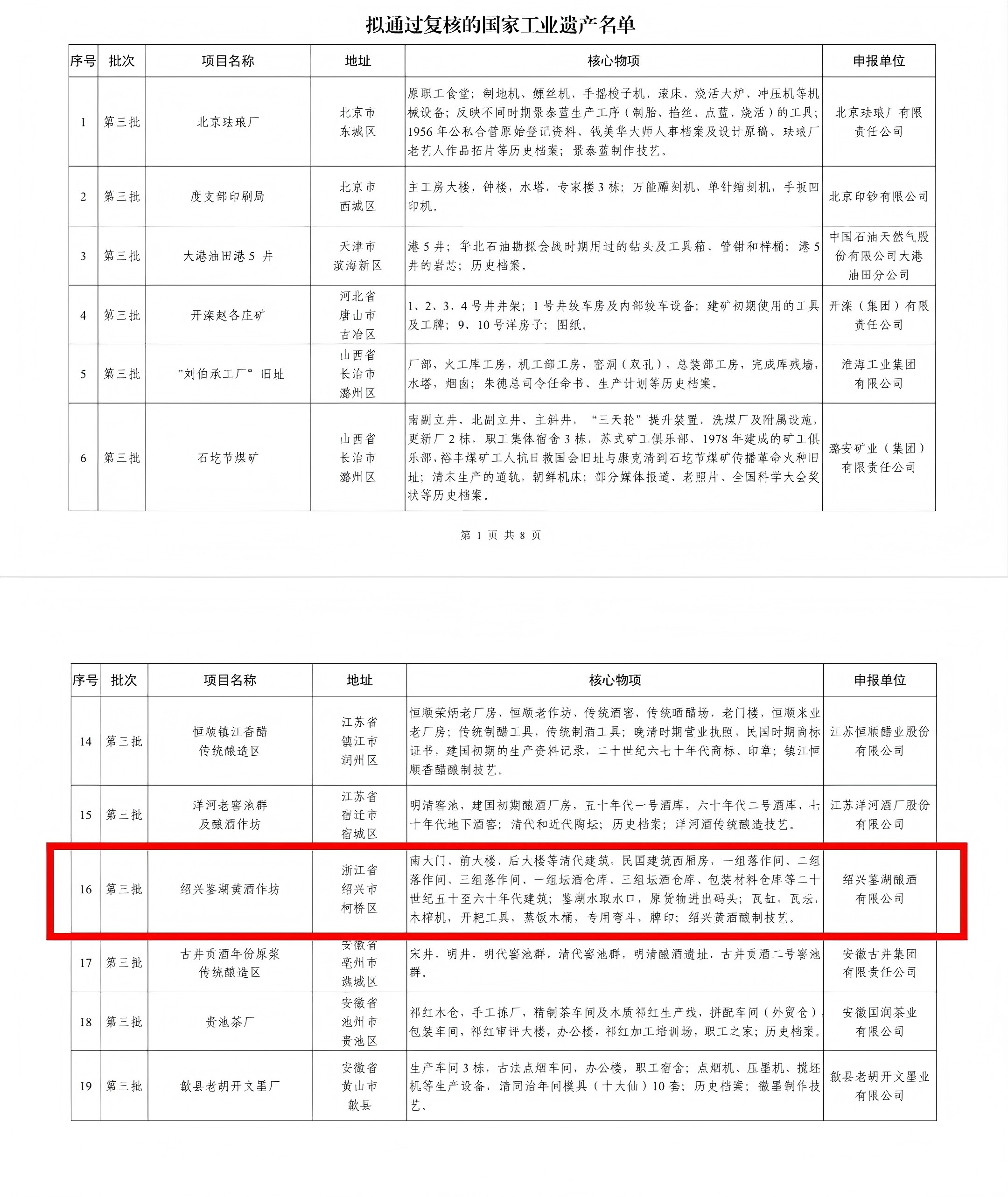 喜报|鉴湖酒坊列入第三批国家工业遗产拟通过复核名单
