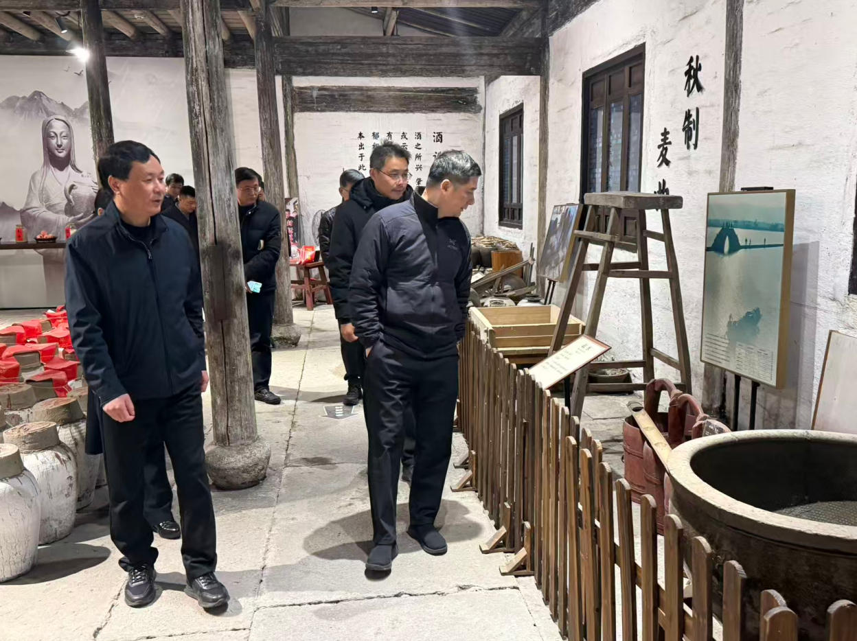 12月15日,绍兴市人民政府副市长王慧杰等一行领导到访鉴湖酒坊调研黄酒产业发展。王市长一行了解了鉴湖酒坊传统酿造工艺和工业旅游发展情况,肯定了酒坊在品牌提升方面的显著成果。他指出,鉴湖酒坊作为国家工业遗产,“原厂址、原厂房、原工艺、原字号”的保护模式是黄酒产业的“活化石”,为黄酒这一历史经典产业的传承与发展树立了标杆。