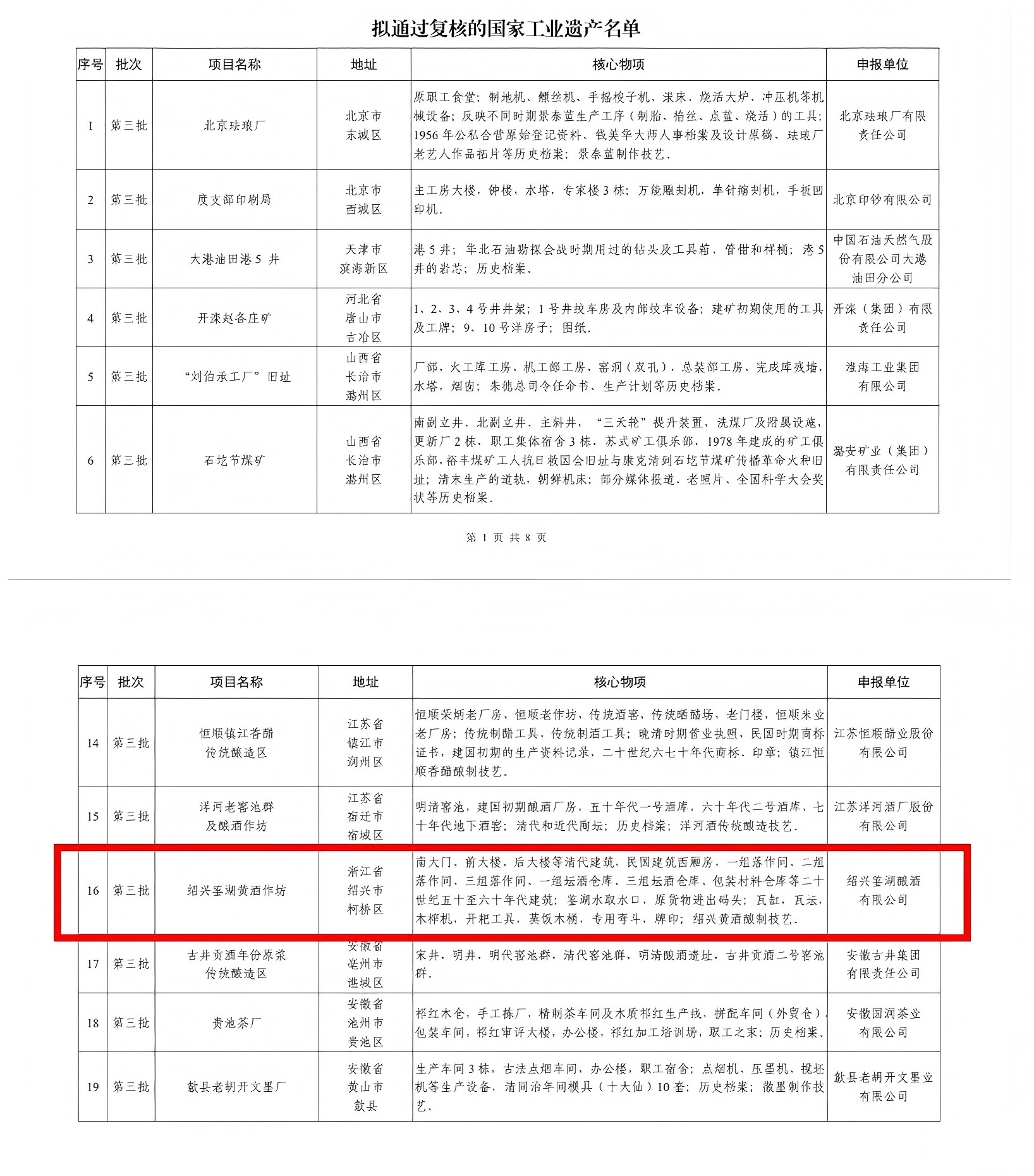 喜报|鉴湖酒坊列入第三批国家工业遗产拟通过复核名单